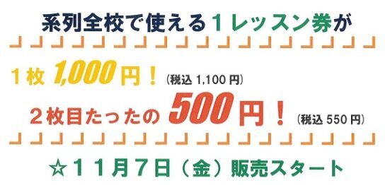 【スクール生の皆様へ】2種類の1レッスン券販売開始のご案内!